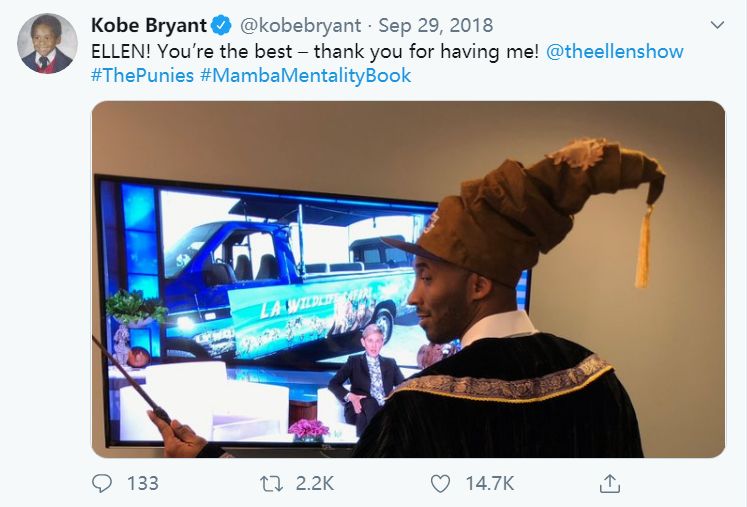 此时,距离科比飞机失事只有几个小时,这也是科比给世界留下的最后消息。