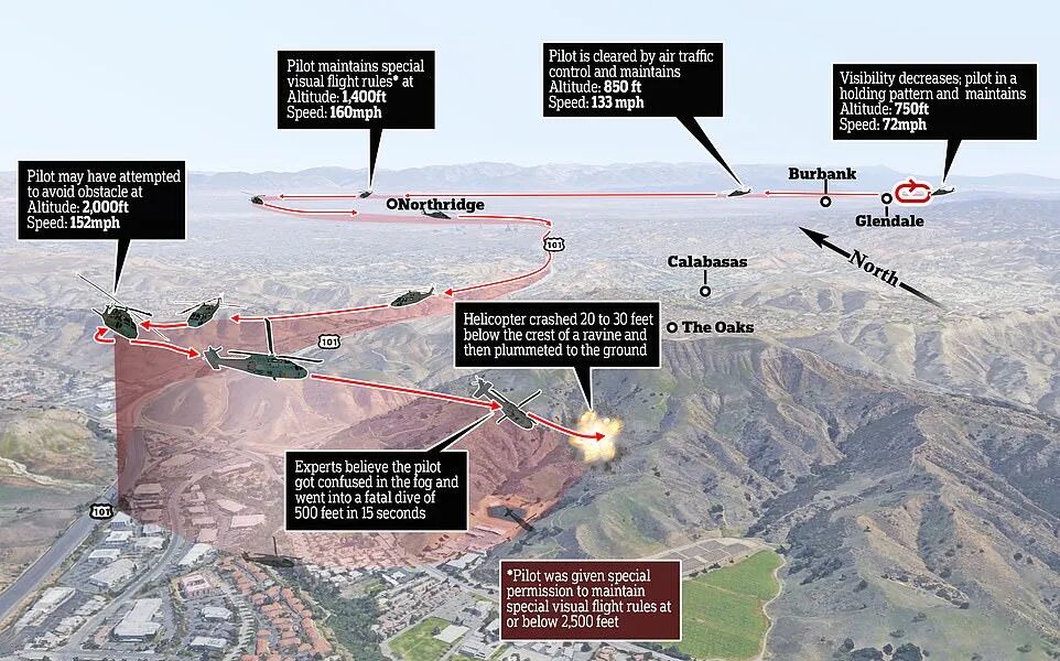 他们所乘坐的直升机在当天早上9点起飞,结果在飞行至第39分钟时不幸坠毁...