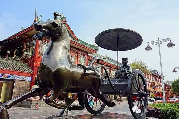 这儿虽是新建的,却让人不得不提。整条街青石砖铺路,仿古旧式建筑,汉画像砖带贯穿街道,商铺林立两侧,且多为珠宝、金银、古玩店面,应是许多怀旧、爱宝人慢逛的好地。