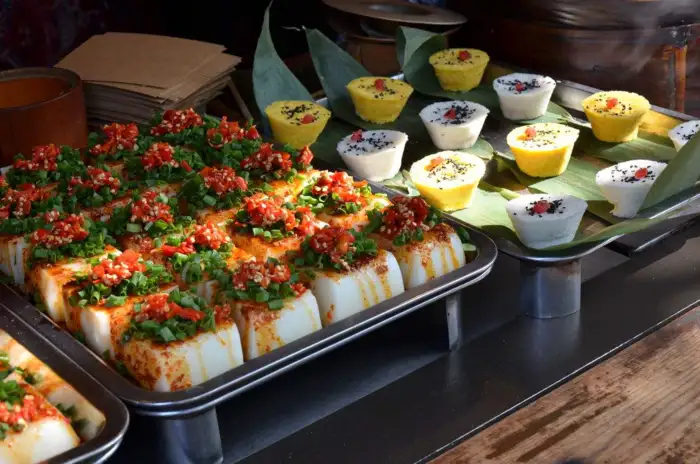 推荐理由:凉糕吃起来又凉又甜极为爽口,利用糖、豆沙、江米等材料做成的糕点冰起来,再切块就成了糯米凉糕了,是夏天消暑点心之一。糯米凉糕口味众多作法也不大相同,其中有红豆口味、绿豆口味、花生口味、黑糖口味、芋头口味等,其口感吃起来都是使人感到清凉且甜而不腻。