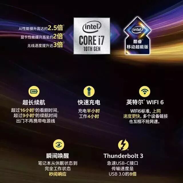 一台完美的笔记本需要什么? 这是个有点复杂的问题,如果我问你一个完美的人需要什么,你可能会回答“好看的外表与有趣的灵魂”。 好看的外表很容易理解,那么,有趣的灵魂对于一台笔记本而言意味着什么呢? 我知道不同的人都有不同的答案。 不过这次我们来幻想一下,一台笔记本要如何同时拥有一个“好看的外表”和一个“有趣的灵魂”。 我们知道,笔记本内部不只有一个部分,诸多功能不同的硬件组合成了这个“有趣的灵魂”。随着科技进步以及科技的普及,越来越多的人开始追求硬件的稀有度,开始追求自己的硬件SSR图鉴收集之旅。 但硬件组合的重点不在于强者们的生搬硬套,而是它们要恰如其分的在一个机体内各司其职。 一个人可以有无数个人格,担当无数面手,一台笔记本也需要在这有限的画布上涂抹出千种万种色彩的能力。 这就是“超极本”最初诞生的目的,为用户提供低功耗、高效率的移动生活方式,推进笔记本轻薄化的发展。你不用再搬着一台厚重的游戏本去上班,也不用只工作两小时就四处找电源插口。 但是正如我们之前所说,作为SSR爱好者,你怎么可能容忍轻薄本低下的能力上限来成为木桶短板呢? 笔记本的体积和性能真的不能达到一个精妙的比例融合吗?其实不是的。 根据大家的反馈,对一台心目中完美的笔记本电脑的要求逐渐精炼成了以下几条:设计、体积、性能、AI、网络等等。 为了加强一下大家的印象,我们来看一个直观的视频: 我们选择的例子是戴尔XPS 13,来自于英特尔移动超能版笔记本。何谓移动超能版?我这就告诉你。 强劲的筋骨——性能 我们常用柔若无骨来形容女子曼妙的身形,不过在电子产品上,尤其是笔记本这样的科技终端上,无论是外在还是内在,强硬的骨骼都是必需。笔记本内部有多少精密部件,一旦一个出了问题,整个产品的使用体验都在直线下降。 内部又是什么在支撑着笔记本?它的性能。首款第十代智能英特尔酷睿处理器,也首次通过英特尔Deep Learning Boost将大规模人工智能技术引入PC。它拥有着英特尔标致的的10纳米制程技术、全新 “Sunny Cove” 核心架构、全新第十一代核芯显卡引擎。这是一次新的突破,笔记本需要更高端的能力。 作为英特尔首款旨在把高性能人工智能引入笔记本电脑的处理器,第十代智能英特尔酷睿处理器通过英特尔DL Boost提供约2.5倍的人工智能性能,专门针对低延迟工作负载。 全新显卡架构可为重度推理工作负载提供速度高达1万亿次浮点运算的矢量计算,从而增强高度便携的轻薄笔记本电脑的创造力、工作效率和娱乐性。人工智能火爆到今天,一个产品可以聪明到什么程度?你无法想象。 持久的耐力——续航 千里之行始于足下,要成功,就要下苦功。如何支持一个人长久的努力?你需要一块大电池。开玩笑的,你需要足够优秀的续航,你需要聪明的AI帮你分配系统资源,你需要快速的充电速度。 英特尔移动超能版笔记本能够为本地视频播放应用场景提供16小时以上的电池续航,以及在真实应用场景条件下提供9小时以上的电池续航。一天也只有24个小时,只要你不加班,不充电的工作一天绝对够。即使你在旅行,有了它的陪伴枯燥的长途飞机也不会太过无聊。 就算你睡醒才发现睡过头,也没关系,充电半小时就可以带着笔记本出门了。这半个小时能给你的笔记本带来四个小时的续航,足以撑过国内短途航班。 广博的人脉——网络 通过朋友来judge别人是否优秀是不完全的,不过我们听说过人以群分,优秀的人身边,通常都是更多优秀的人。也许他们彼此吸引,也许他们近朱者赤,但他们终将变得更加优秀。对于一台笔记本来说,优秀的关系网代表着什么?快速的网络速度和一流的连接性。 第十代智能英特尔酷睿处理器首次集成英特尔Wi-Fi 6(Gig+),使无线网络速度提高近3倍。与此同时英特尔采用Gig+支持的Wi-Fi 6连接提供超过1Gbps的无线网络速度、以及增强的可靠性和性能。 Wi-Fi 6主要使用了OFDMA、MU-MIMO等技术,MU-MIMO技术允许路由器同时与多个设备通信,而不是依次进行通信。Wi-Fi 6将允许与多达8个设备通信,最高速率可达9.6Gbps。 Wi-Fi 6标准的启用,也将给Wi-Fi技术带来一次“技术延寿”和竞争力的大幅提升,将带来“一个新的Wi-Fi时代”。 有了更快、更高标准的Wi-Fi,全球会议随时开无延迟,网络再也不会掉线错过重大事件。在5G元年,Wi-Fi是多么重要?网速又是多么重要?只会比我们想象的更重要。 包容的胸怀——接口 和很多人成为朋友,这不是谁都能做到的。因为世界上有各种各样的人,所以兼收并蓄、海纳百川是我们自古以来的美德和民族特征。对产品而言,这同样重要。 随着科技发展,外接产品只多不少。显示器、扩展坞、外接硬盘......都在用各自不同的方式来占有你笔记本上的一席之地。 第十代智能英特尔酷睿处理器搭载Thunderbolt 3,带来最快、最通用的端口。Thunderbolt技术融合PCI Express和DisplayPort两种通信协议。其中PCI Express用于数据传输,可以非常方便的进行任何类型设备扩展。 它的带宽可达上代的两倍,将数据传输、视频输出和充电集合至一个小巧的接口中。它还与 USB-C 整合,在获得速度的同时,更添便捷易用,打造出一个真正通用的端口。 快速的回应——唤醒 现如今,秒回似乎成为一种社交礼仪。当然我们不能一味要求这秒有多快,只是及时的回应是一个优秀的态度