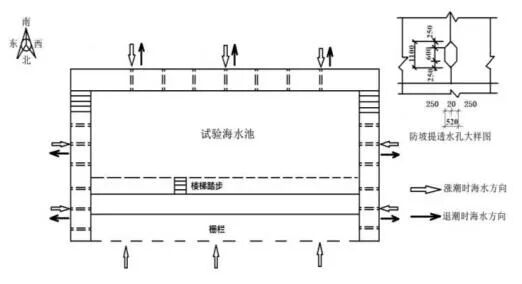 Fig. 1 Design engineering drawing of seawater flow direction of Sanya Station Pool