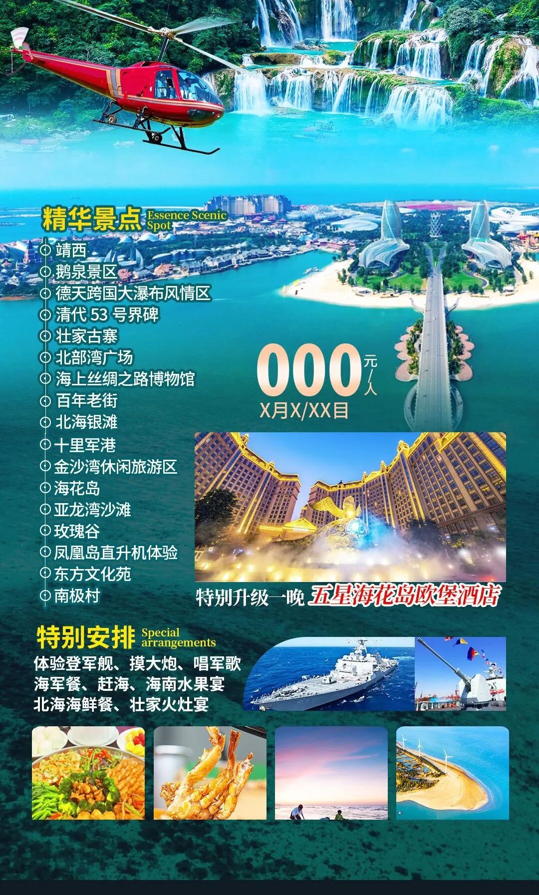北部湾广场、北海 +银滩、十里军港 、金沙湾旅游休闲区