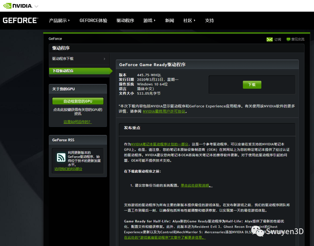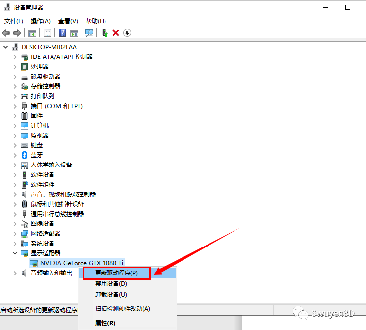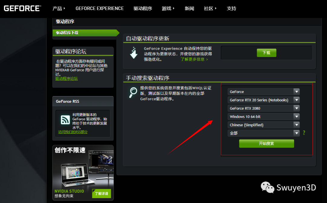 展开显示适配器可以看到显卡名称,如果有两个,说明一个是独立显卡,一个是集成显卡,软件运行主要使用独立显卡。通常独立显卡的名称开头为NVIDIA或者AMD,可以复制显卡名称百度确定一下。保持显卡的驱动最新,是提高软件性能的有效方法之一,下面教大家两种更新显卡驱动的方法!供大家参考!如上图展开显示配适器后,右键单击独立显卡,选择更新驱动程序。找到新的版本驱动后,系统会自动安装更新,如若是最新驱动程序,则如下图所示:二.通过Geforce Experience程序更新显卡驱动对于使用N卡的朋友可以通过英伟达官方的程序Geforce Experience来更新显卡驱动。打开英伟达官网驱动,点击下载安装Geforce Experience程序https://www.geforce.cn/drivers当检测到最新最新驱动后,点击下载安装就完成更新了。有些朋友的工作环境是无法联网更新的,可通过官网下载显卡驱动,再来更新。打开官网https://www.geforce.cn/drivers手动搜索驱动程序安徽数研智能科技有限公司期待与全国各地的医师、科研人员、3D打印设备厂商开展广泛合作!欢迎您的关注!