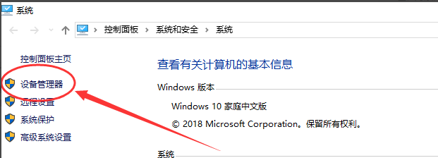 2、打开系统窗口信息,选择点击其中左上角的设备管理器选项,如下图所示。