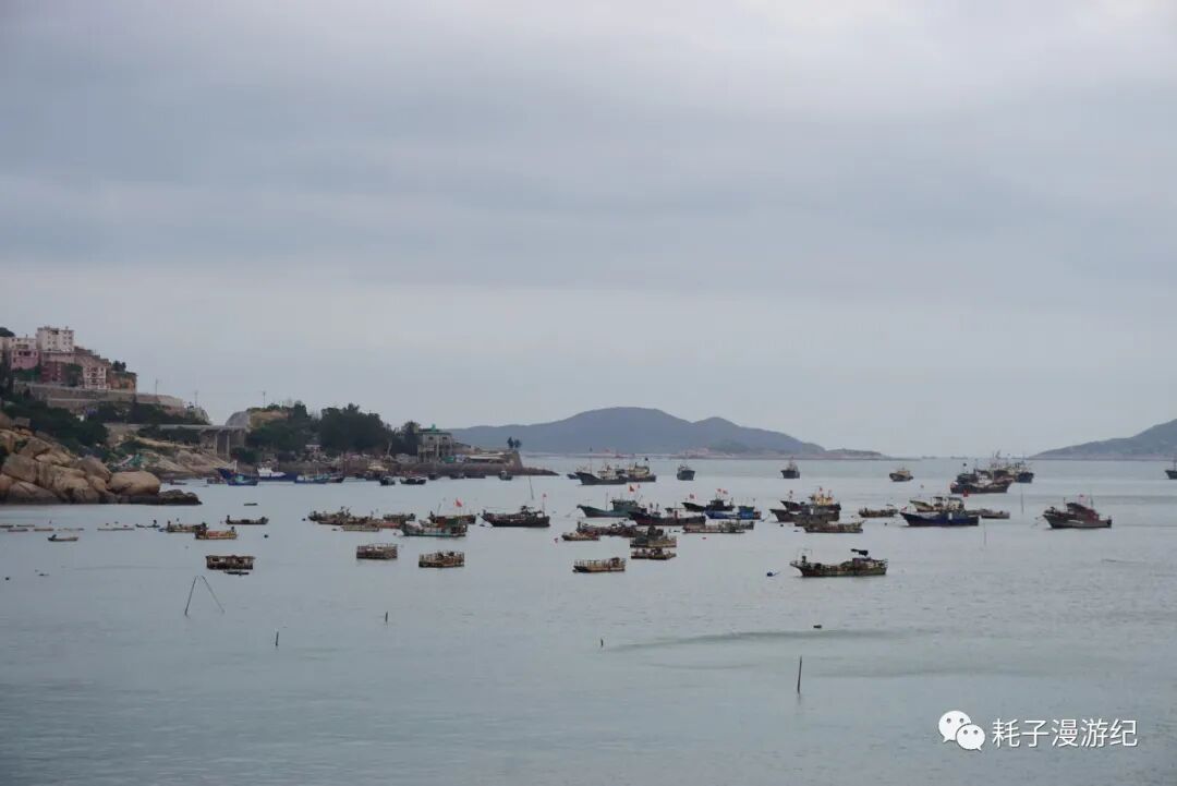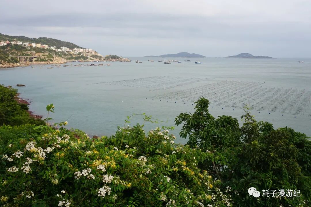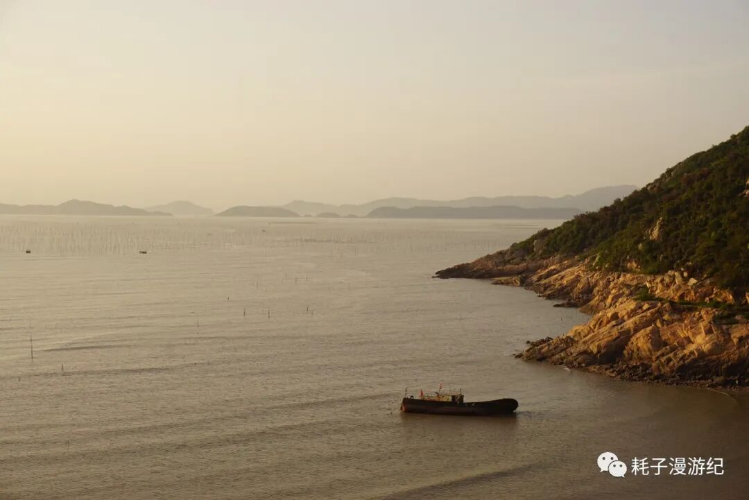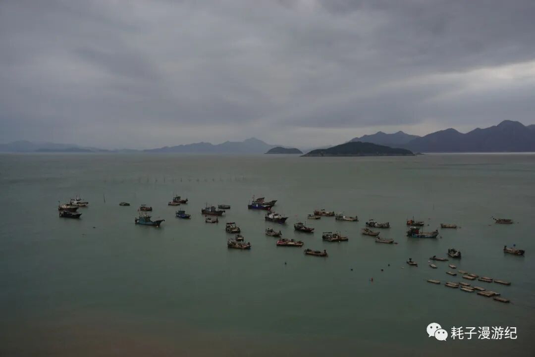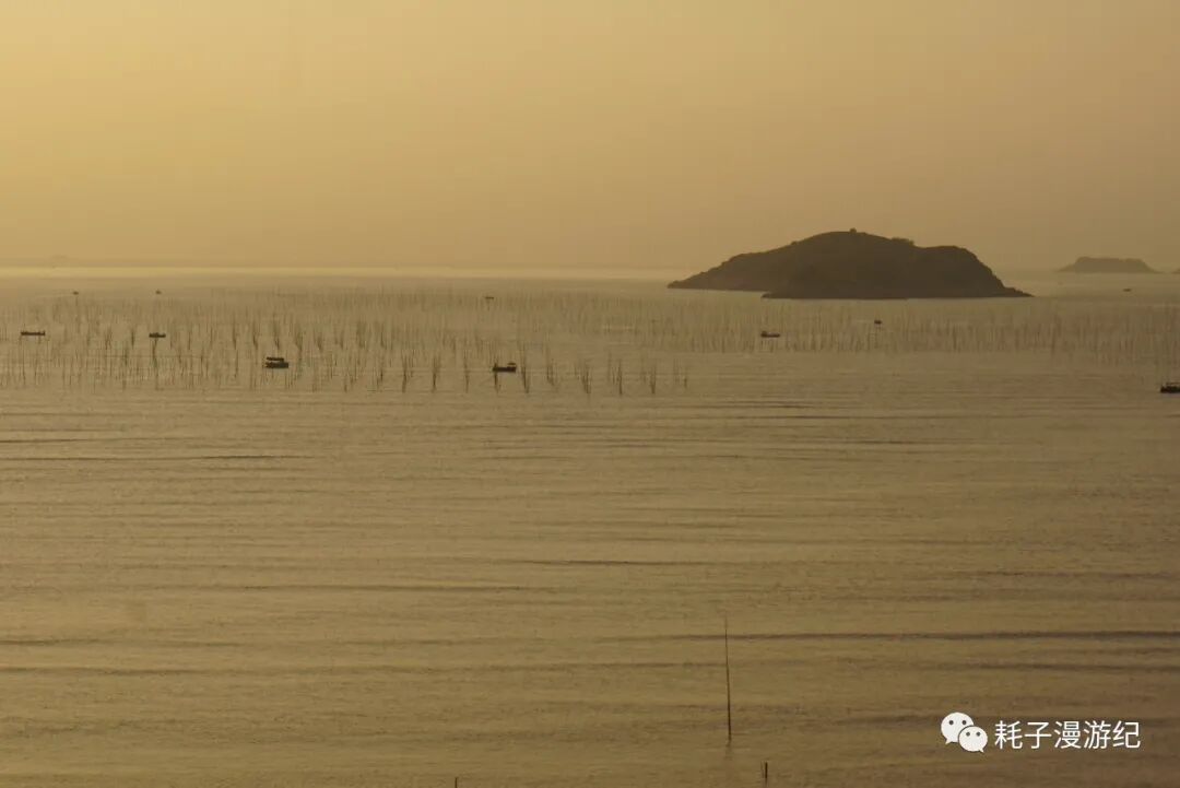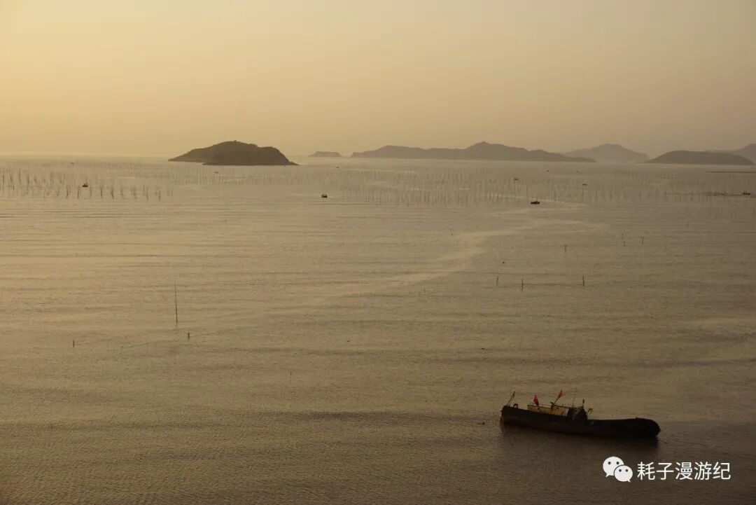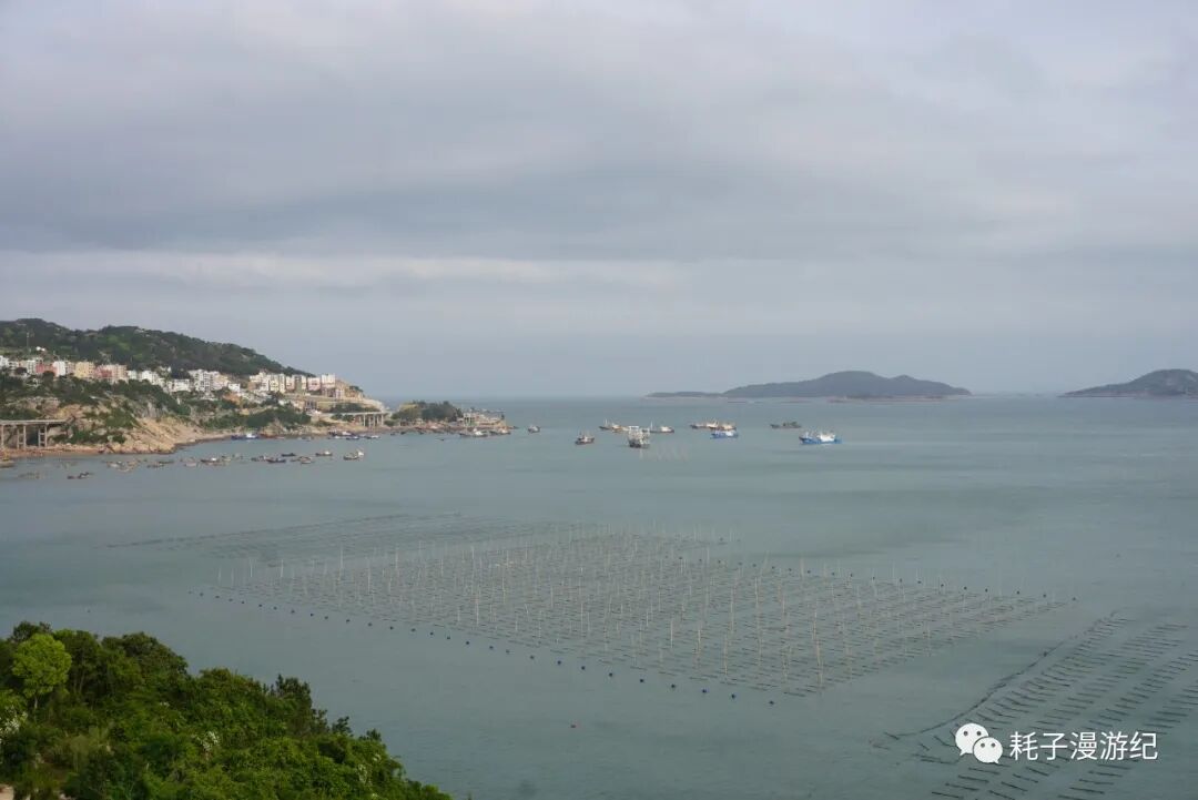 霞浦最后一站:沙江S湾。网上的图片是这样的:海面上密密麻麻的竹竿(用来晒海带)插成S型,中间留一条河道,夕阳下船行其中,留下温柔的剪影,那是极美的画面。但这个傍晚没有夕阳,而且从南湾那里我们就意识到原来这都是人造的,竹竿也是人为的插成了S型,最可气的是顺着路标会直接到观景台下方,那是一栋8层高的毛坯房,专门为观景而建,网上的图片就是在楼顶拍的,登楼20元/人,而在选择是否登楼之前连海边都看不见。所以我们果断放弃登楼,找路去海边,先探探情况再说。到了海边就看到密密麻麻的竹竿,今日阴天,无人晾晒海带,渡口停了一条船,从地图上看距离沙江不远的地方有座小岛,名曰竹江,我们问清了摆渡船是流水发班,便上去了,沙江-竹江船行15 min,穿行在竹竿的海洋中,不知道毛坯房楼顶有多少人在拍我们。竹江本身很小,岛中心地势最高,上山路铺设的很是整齐,山顶还有观景平台,免费观看S型竹竿,不过这个角度和沙江S湾还是有很大不同的,不能替代。所以如果重点在摄影还是去爬那毛坯房吧,如果不是很在意,那更推荐来竹江,往返3×2=6元的摆渡费,同样能看到景色,还多了一重体验。