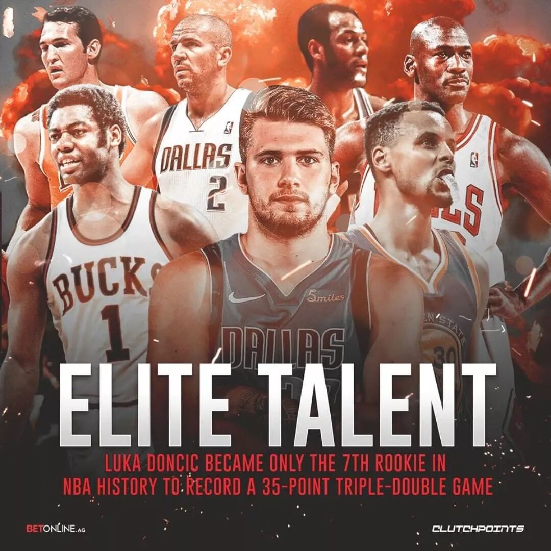 在1月28日对阵猛龙的比赛中,东契奇打出了赛季至今的最强一战,24投14中拿下35分12板10助,成为了NBA史上第7位拿下35+三双的新秀。