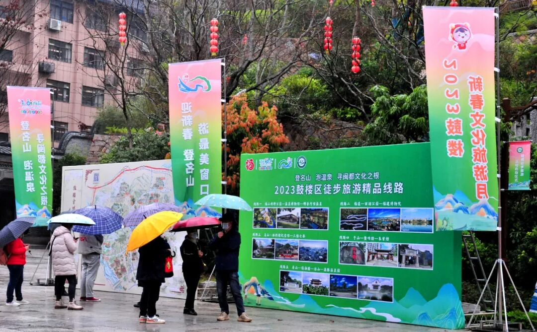 为了促进文旅市场回暖复苏、推广“福”文化以及“大众旅游、全民健身”理念,2023年2月10日,由福州市文化和旅游局、中共福州市鼓楼区委、福州市鼓楼区人民政府指导,鼓楼区委宣传部、鼓楼区文化体育和旅游局、鼓楼区旅游事业发展中心主办,福建省旅游发展集团闽都文旅公司策划执行的“登名山 泡温泉 游最美窗口”2023鼓楼区新春文化旅游月暨徒步旅游活动启动仪式在乌山隆重举行。 一场融合了2023鼓楼徒步旅游、“福”文化及鼓楼文旅集市、鼓楼非遗展演、鼓楼徒步旅游摄影展、鼓楼徒步旅游打卡积分等多种文体旅融合活动盛大启动。 △发布鼓楼区五条徒步旅游线路 △领导嘉宾鸣枪启动 △2023鼓楼全民徒步旅游首发活动 活动当天,位于乌山双骖园的“福”文化及鼓楼文旅集市人头攒动。“福”文化转化体验以及闽派传统旗袍手工刺绣技艺、福州髹漆全皮箱制作技艺、福州茉莉花膏古法制作技艺、福州古建筑营造技艺、福州传统扇画制作技艺、福州剪纸等鼓楼非遗展位吸引了众多游客驻足观赏。 乌山登山徒步旅游线路沿线,精彩的广陵派古琴、闽剧、陈氏太极拳等非遗表演展现了鼓楼非遗的魅力。 △鼓楼非遗展演--广陵派古琴 △鼓楼非遗展演--闽剧 启动仪式上还发布了2023鼓楼区五条徒步旅游精品线路。 线路一:福山郊野公园--温泉博物馆--明谷行馆温泉;线路二:福道--西湖公园--福建博物院;线路三:乌山--林则徐纪念馆--三坊七巷;线路四:于山--鳌峰坊--朱紫坊;线路五:屏山--镇海楼--冶山--源脉温泉园。 2023鼓楼区徒步旅游活动将持续至3月31日,活动期间还将开展鼓楼区五大名山打卡积分活动。市民游客只要扫以下二维码或在福山、福道、于山、乌山、屏山扫码关注“鼓楼区徒步旅游联盟”微信公众号即可参加活动,打卡一座山即可获得20积分,最终前10名集满100分者可获得福州温泉门票一张。 大众旅游 全民健身 让我们一起出发吧△鼓楼非遗展演--陈氏太极拳