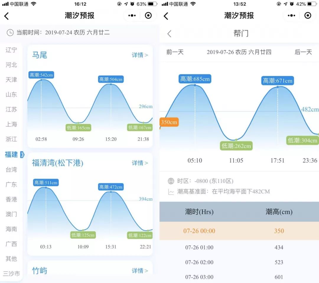 如果说西瓜、冷饮、冰棍, 是夏日里离不开的三大法宝! 那海滩, 就是夏日里最美的风景! 蓝蓝的海水, 雪白的浪花, 细腻的沙滩, 漫步海滩, 在海滨浴场踏浪游泳, 别提有多惬意了! 但是大海是有脾气的! 潮涨潮落 不是任何适合时间都适合在海边玩耍 可以亲近海水,但是要注意是否有大风、暴雨天气,在海浪较高的情况下,不适合下海游泳。 可以在海边捡贝壳,沙滩漫步。退潮时的水位离海岸线很远,海水正在倒腿会有危险,不适合下海游泳。 那么问题来了? 怎么才能知道潮汐时间呢? 有的小伙伴说潮汐时间可以计算 但是计算又耗时又容易出错 小海豚有一个好办法 一秒知道潮汐时间 没错!潮汐预报功能上线啦! 在潮汐预报中,可以尽情查询到全国的潮汐功能,进入到详情页面还能查询到具体到小时及的潮高情况。 有了潮汐预报, 潮涨潮落都尽在掌握之中, 这个夏天快去海边浪起来吧! 有了天气说小程序 随时在微信中查看天气 无需安装 实时更新全国天气咨询 高温天气提前预报 随时做好降温防暑准备 天气说体验官火热招募中 如果你关注天气 热衷发布天气实景图片 欢迎您加入天气说体验官群 添加“小海豚”为好友 加群暗号“体验官” 微信后台回复关键词 【天气】 查看未来7天天气情况 内容参考:中央气象台,中国天气,新闻联播天气预报, 公告:本文仅供参考,并不构成决策依据,如需官方预报结果,请咨询权威气象部门。 部分图片选自网络,如有侵权,请联系后台删除!天气说订阅号