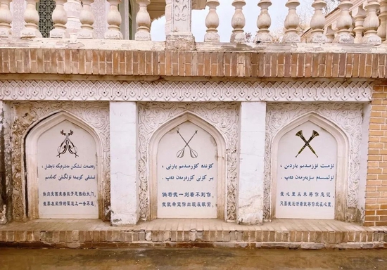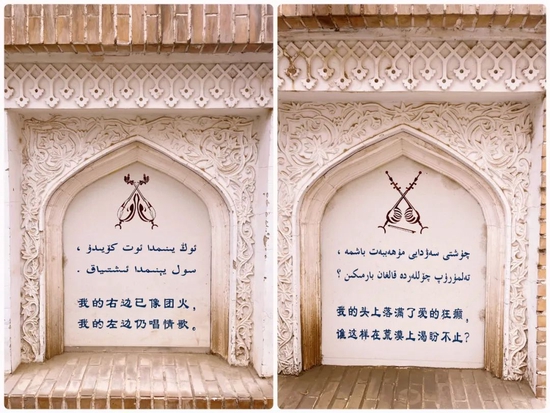 20年王宫生活里,在丈夫和宫廷乐师喀迪尔汗(宫墙上那首诗便是他的作品)的协助下,她顶住了来自宗教的压力,邀请木卡姆大师云集宫中,投入搜集、整理、规范工作中。