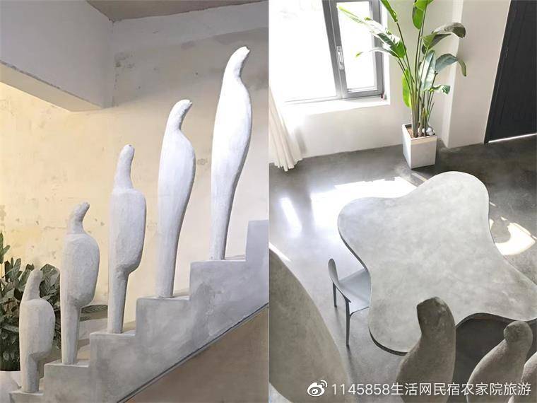 特色亮点:主人综合绘画、雕塑等艺术,融合从阅读书籍带来的思考。选择以“蛋”为主题,房子内外随处可见蛋的造型,或者与蛋有关的鸟的造型,或从蛋形中抽象演化出来的椭圆曲线,总之“蛋”在房子中随处可见。客房及公共区域随处可见绘画、雕塑、浮雕和手工艺品,均由主人绘制、制作,艺宿者享受大自然之美同时,亦能感受到艺术之美。