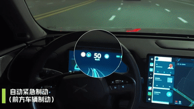 * 前车紧急制动:拥挤的城市车流经常会遇到前方发生紧急状况,可能是前车司机的一个误操作,也可能是前车前方突然发现“鬼探头”,G9测试车辆可根据前车速度、距离进行计算、规划和处理。