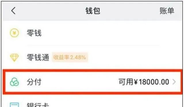 4、在“钱包”配置界面,可以看到“分付”的授信额度。
