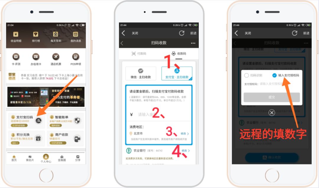 微信信用卡、支付宝花呗、京东白条、如何利用平台(自用或远程)TX步骤,请按照下方文字步骤操作, 平台特色:费率0.38,加秒到费!(一万只需40)两分钟快速秒到账银行卡! (平台在最下方) 1、当面收款--打开平台--点击微信收款--(当面或两部手机)按照视频操作直接扫即可。(单笔2000内,可多笔) 2、远程套或者一部手机的--打开微信付款码--点击付款码数字--一次性记录留在付款页面不要点返回--软件切换到平台--输入数字确认提交--软件切换回微信--确认金额输入密码即可。(单笔2000内,可多笔) (点击图片放大) (二)支付宝花呗自用远程TX步骤 支付宝目前只支持输入数字自用或远程用(单笔2000内,可多笔,花呗风控者,请尝试小额即可。) 步骤:远程套或自用的--打开支付宝付款码--点击付款码数字--一次性记录留在付款页面不要点返回--软件切换到平台--输入数字确认提交--软件切换回支付宝--确认金额输入密码即可。 (点击图片放大) (三)信用卡带积分大额秒到步骤视频 (全天24小时可秒到) (四)京东白条教程老视频 打开京东--我的--白条--白条闪付--添加到微信--按照微信付款步骤即可 (白条风控者,请尝试小额即可) 【下载平台认证后即可台免费使用】 平台免费使用--无需交费--识别下载认证即可,小程序、app都可 (不懂可私信微信客服交流)