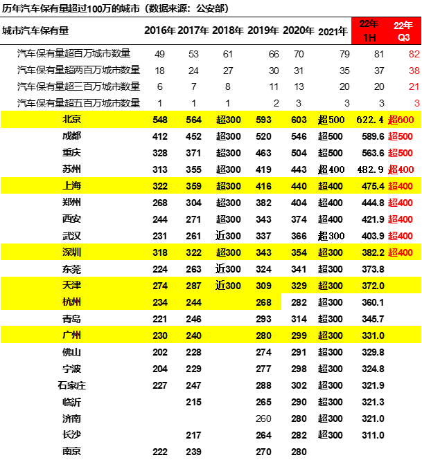 截至9月底,全国有82个城市的汽车保有量超过100万辆,同比增加6个城市,38个城市超过200万辆,21个城市超过300万辆。其中,南京等城市的汽车消费恢复,应该超过了300万台。