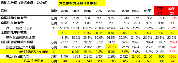 依据公安部网站发布的最新信息,截至2022年9月底,全国机动车保有量达4.12亿辆,其中汽车3.15亿辆;机动车驾驶人4.99亿人,其中汽车驾驶人4.61亿人。2022年3季度的燃油车与新能源车表现很强。由于车购税减半政策的推出,乘用车市场强势增长,个性化出行增长迅猛。