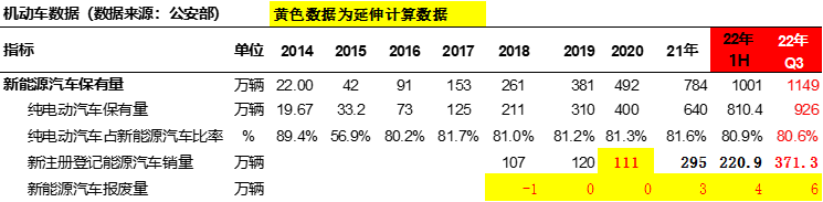 截至9月底,全国新能源汽车保有量达1149万辆,占汽车保有量的3.65%。其中,纯电动汽车保有量926万辆,占新能源汽车总量的80.6%。2022年前三季度,全国新注册登记新能源汽车371.3万辆,较去年同期增加184.2万辆,同比增长98.48%,占汽车新注册登记量的21.34%。