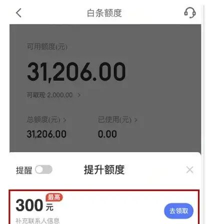 (1)增信提额:完善个人信息,就能领取最高300元固定额度。