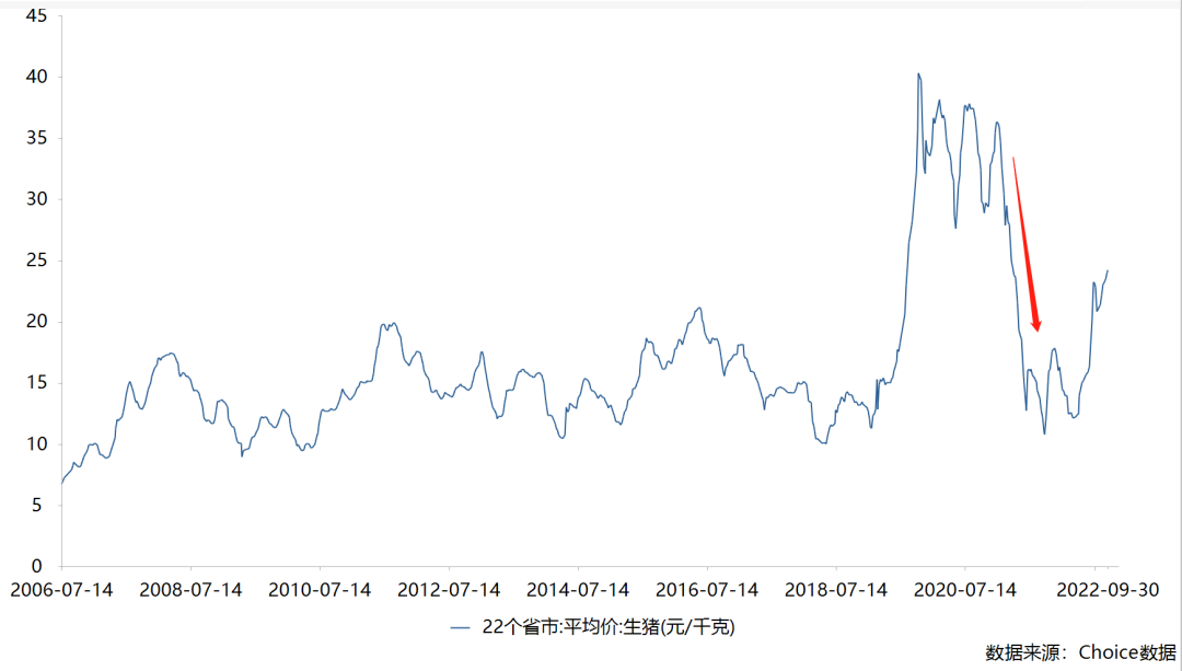 牧原股份在9月2日的机构调研中表示,近两个月公司 完全成本在15.5元/公斤左右, 若按每头猪均重100公斤~110公斤计算, 8月牧原股份盈利约33.28亿元~40.9亿元,或已实现日赚一亿。 在猪价上涨之时 各大猪企也在加码布局 , 供港大户东瑞股份2021年出栏了36.76万头生猪,其中20.6万头供给高价格的香港市场,净利润2.12亿元,成绩亮眼。2023年,东瑞股份预计出栏将达120万头,直接翻了近3倍。 。 唐人神在接受调研时表示,公司长期发展目标是年出栏生猪1000万头。而2021年唐人神的生猪出栏为154.23万头,目标出栏直接翻了近7倍。 05 傲农生物规划2023年出栏800万头,2024年1000万头 温氏股份接受调研时表示:公司今年的出栏目标为1800万头左右,明年考虑在今年出栏量的基础上再增加800-1000万头。 上一轮周期中,2020年,猪价创下前所未有的高点,毛猪价格接近20元/斤。高利润刺激下,各行各业跨界搞养猪,这样的结果是2021下半年猪市行情崩塌,养猪业亏损惨重。这次还会重演“5元”行情吗? 来源:综合雪球、国家发改委、第一财经、新牧网等