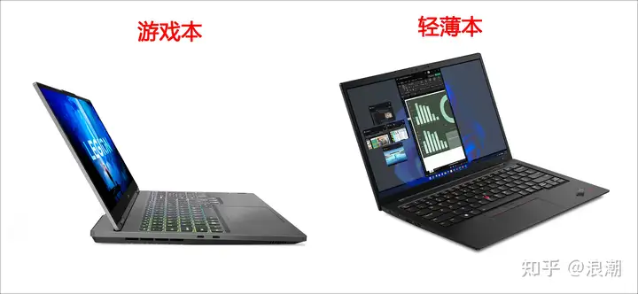 轻薄本厚度比游戏本薄,重量也更轻,一般是1.3kg~1.9kg。轻薄本的处理器和显卡性能比游戏本弱一些,但是发热量低,风扇噪音安静一些。