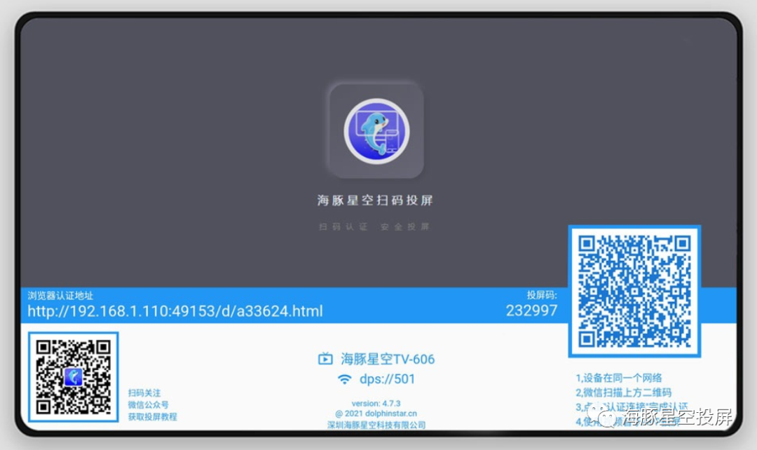 投屏方法非常简单,只需要去官网(https://dolphinstar.cn/)分别下载app,即可联动投屏。