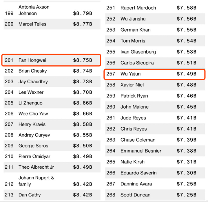 根据福布斯实时富豪榜,9月初,范红卫就曾取代碧桂园联席主席杨惠妍,坐上中国女首富之位。9月16日,吴亚军又超越范红卫成为中国女首富。此前,2022年胡润全球富豪榜上,范红卫及其丈夫陈建华排名第48,超过排名第55位的杨惠妍。