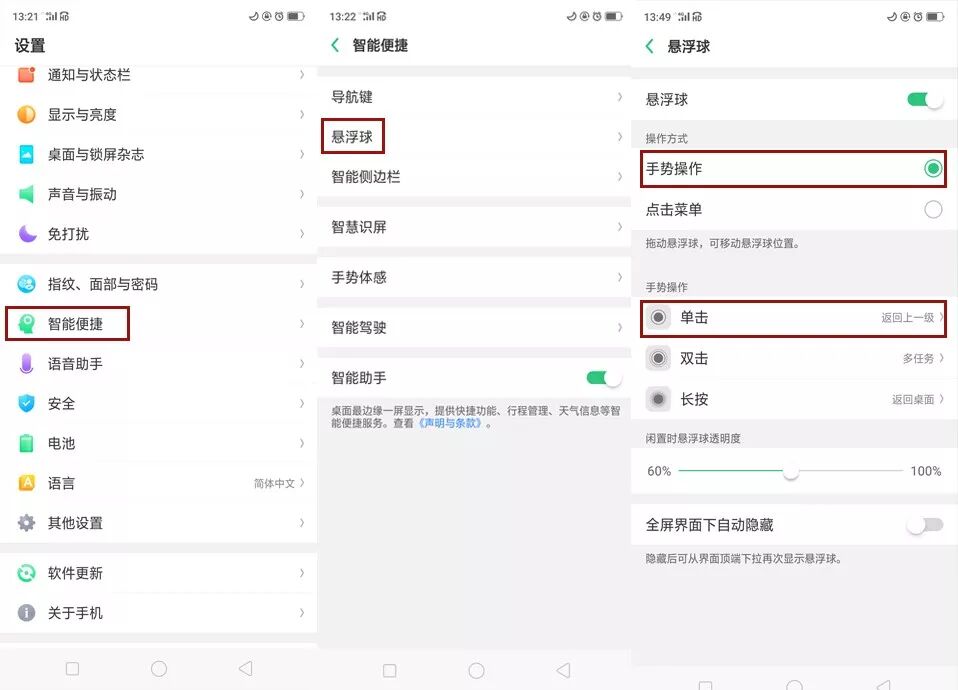 这种截图方法有两种模式:1 点击截屏:悬浮球内打开手势操作,手势操作可以编辑为单击截屏(也可以设置成双击或者长按)