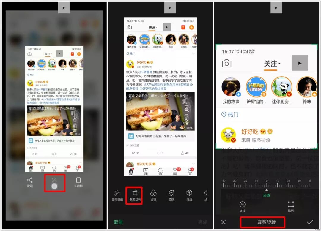 操作方式:基础截屏-编辑-编辑裁剪旋转