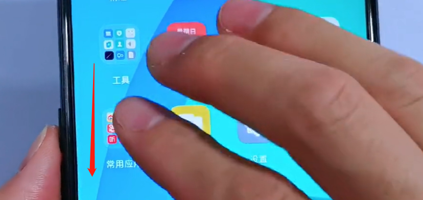 截屏的第一种方法,就是三指下滑截屏,我们只要三根手指在屏幕的顶端往下滑,可以看到,就截屏成功了,非常的简单。