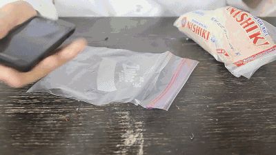 干燥剂吸水,干燥剂就是大家在购买一些商品时,都会看到的一种物品,很小的独立包装。这些大家可以收集起来,以备不时之需。把干燥剂拆开与手机密封在一起,效果也是很明显的。