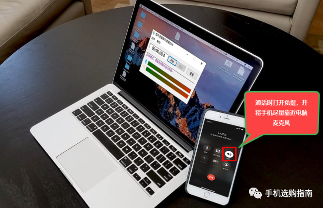 3,苹果手机拨打或接听电话时,打开免提功能,并让手机尽量靠近电脑麦克风。