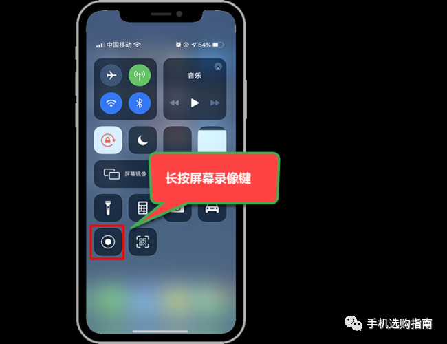 1,该方法其实实现不了苹果手机通话录音功能,只是看到网上有多篇文章介绍该方法,所以在这里也和题主详细说明一下步骤。先打开控制中心(从屏幕右上角往左下方滑动屏幕),并长按屏幕录像键,如下图所示。