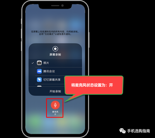 2,将麦克风状态设置为:开,然后在iPhone进行通话时,再次打开控制中心,并点击屏幕录像键开始对屏幕进行录音录像。但本人实测后发现,在相册中查看录制到的屏幕视频时,还是没有声音。苹果公司特意严格限制了通话录音功能,估计是对屏幕录像也进行了限制,限制了录制通话声音的功能,所以网上流传的该方法是错误的方法,苹果公司既然要限制通话录音,是不可能出现这种小纰漏的。