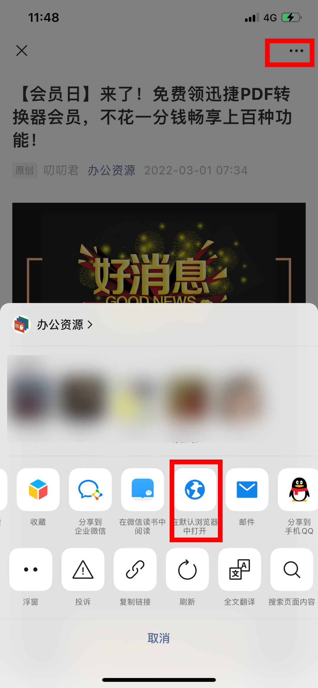 ①首先用Safari 浏览器打开某个页面,比如叨叨君想截图微信内容的整个页面,这个时候需要用Safari 浏览器打开微信页面。