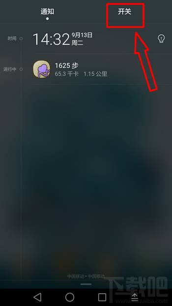 第1步:打开通知栏,点选【开关】那一栏按钮;