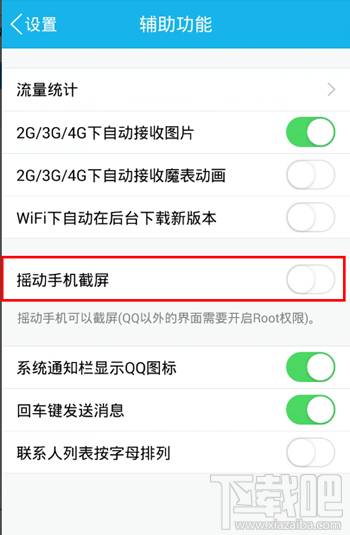 第2步:手机QQ也自带截图功能,在【设置】-【辅助功能】里,有摇一摇截屏。注意,没有root权限的话,只能截QQ的界面。
