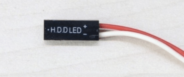 HDD LED跳线插在绿色硬盘灯针上,需要区分正负极,不过没像LED一样分开,也是左边+级右边-级。