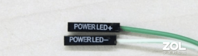 Power LED插在红色电源灯针上,有两根线,注意正负极,一般为左边+级右边-级。