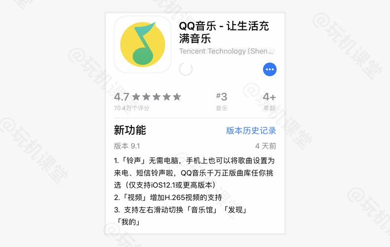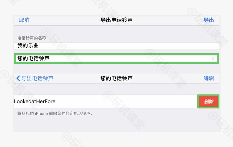 大家晚上好,这里是玩机课堂 在之前给大家分享过在iPhone上,直接换铃声的方法,不过那个方法还是有一些复杂,今天说一个最新的方法。 最近看到QQ音乐更新了一个功能,可以在手机上用QQ音乐直接导出音乐,下面来看一下是怎样操作的。 这里需要准备2款软件,一款是库乐队,iPhone 的手机都会自带,如果没有的话可以自己去下载,还有就是QQ音乐,2款软件大家在后台 对话框发送1136可以使用。 这里有一点小要求,也就是目前只支持iOS12.1或更高的版本,如果不符合,可以在电脑上更换,或者观看以前的方法。 我们首先安装好软件,之后打开QQ音乐,搜索一首你想设置铃声的歌曲,然后点击右上角的三个点。 选择设置铃声,接下来可以选取一段作为铃声,建议这里大家裁剪30秒,然后点击下方的,设置为铃声。 这里选择库乐队软件,会自动拷贝到里面并打开,长按这个铃声文件,选择共享,电话铃声,这里可以修改一下名字,点击导出就可以了。 现在去设置电话铃声里面就可以看到,刚刚导出的铃声了,感兴趣的可以去试试,比之前的方法少了一些步骤。 如果想删除的话,打开库乐队软件,随便选择一个铃声文件,点击共享,电话铃声,这一步点击最下方,您的电话铃声,可以进行删除。 好了,希望这个技巧对你有所帮助,晚安。 往期推荐