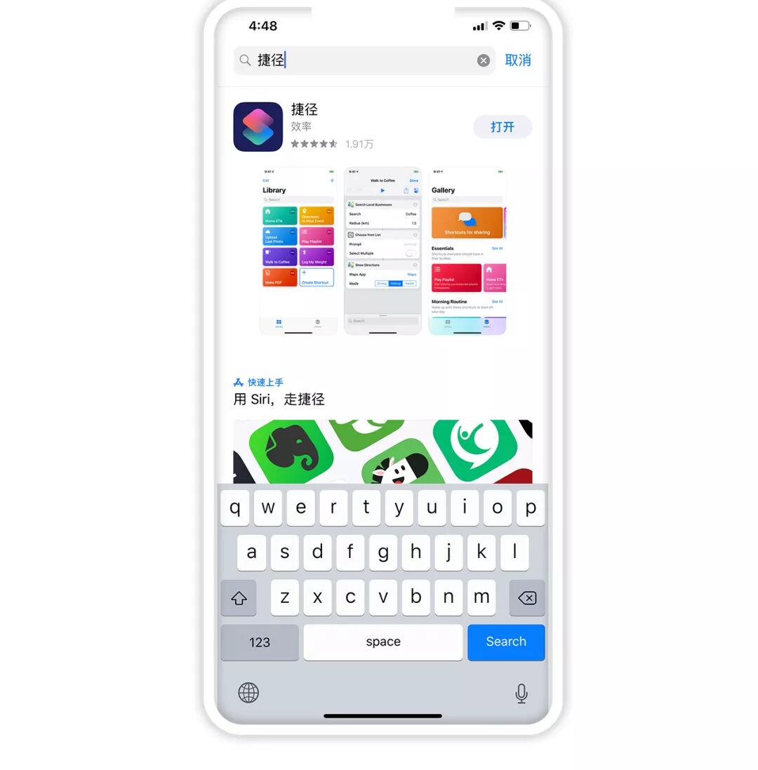 首先需要在你的手机上下载「快捷指令」应用和iPhone自带应用「库乐队」,在APP store搜索捷径下载。如图: