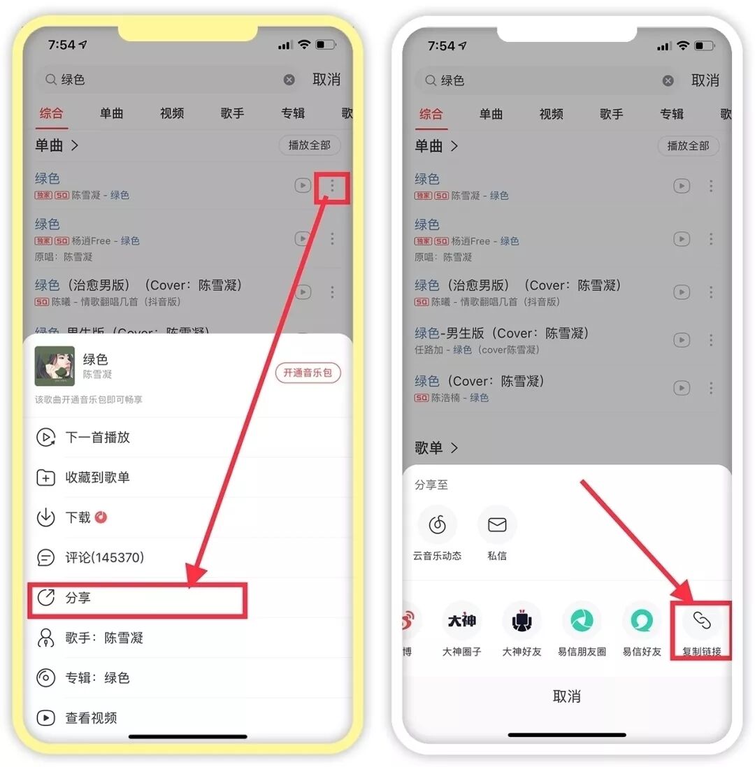 第三步,选取你想要更换的音乐,可以在所有的音乐软件里选取,以网易云音乐为例,打开选取一首歌,点击“...”再点击分享,复制链接。