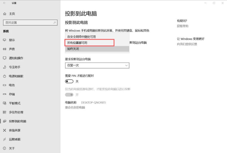点击始终关闭后,会出现选择框,点击【所有位置都可用】