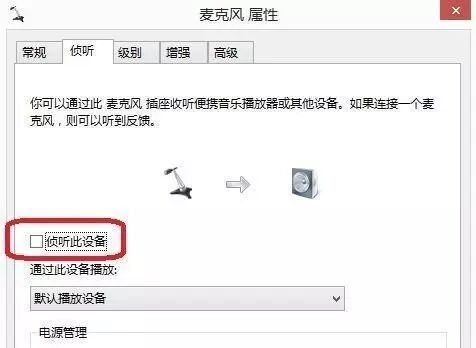 右击【麦克风】,选择【属性】,找到【侦听此设备】,取消勾选。