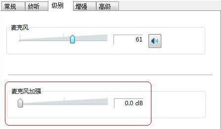 再点击“级别”,把【麦克风加强】设为10.0dB,可以适度调节麦克风音量;