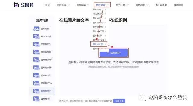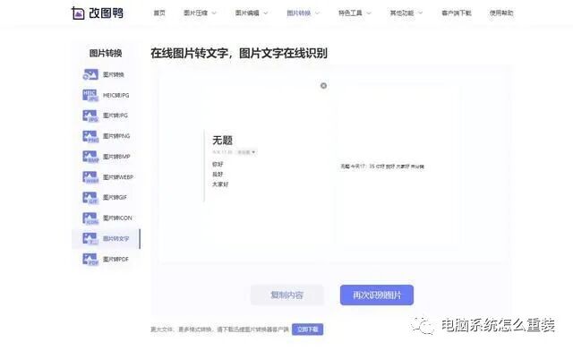 以上都是手机端的提取文字方法,接下来给大家分享一个在线网站——改图鸭,它是一个在线图片编辑处理平台,支持图片压缩、图片编辑、图片转换、特色工具等功能。win10激活密钥