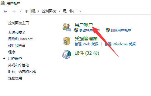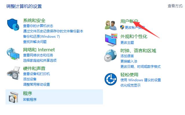 以win10系统举例,win7稍有不同,程序都是一样,打开操作就会明白,首先打开控制面板,点击用户账户: