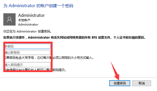 填写你准备好的密码,并且添加一个提示,,然后点击创建密码: