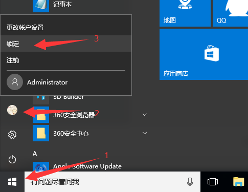 还有,我们也可以在开始菜单里面选择锁定按钮:
