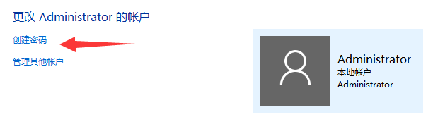 我们点击需要添加或者更改的本地账户,出现以下界面点击创建密码,如果之前已经创建了密码,则会显示更改密码: