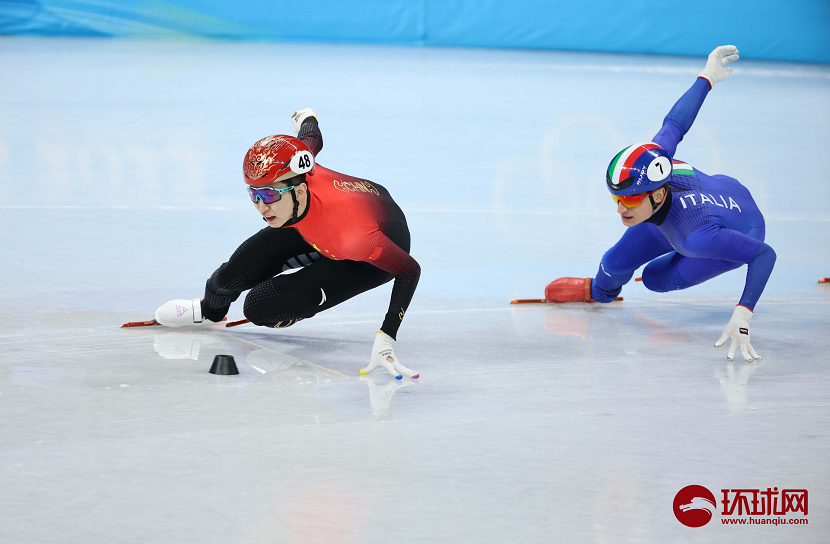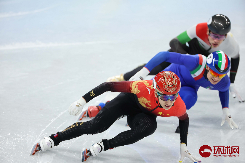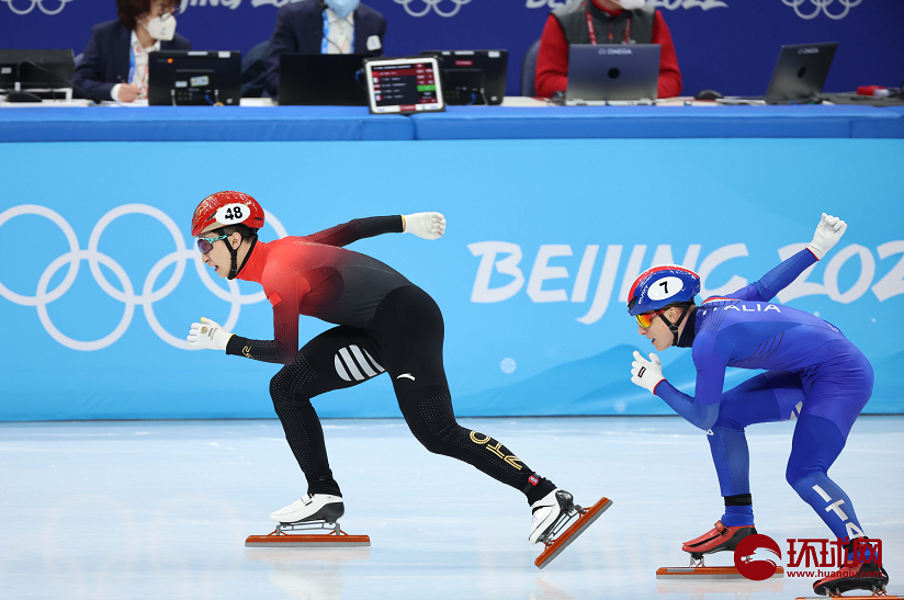 13日晚,武大靖在短道速滑男子500米1/4决赛第二组比赛中。摄影:环球时报-环球网/李昊